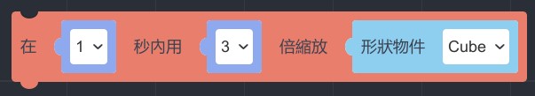 範例:將積木設定為「在 1 秒內用 3 倍縮放 Cube」,物件就會在 1 秒內漸漸放大。