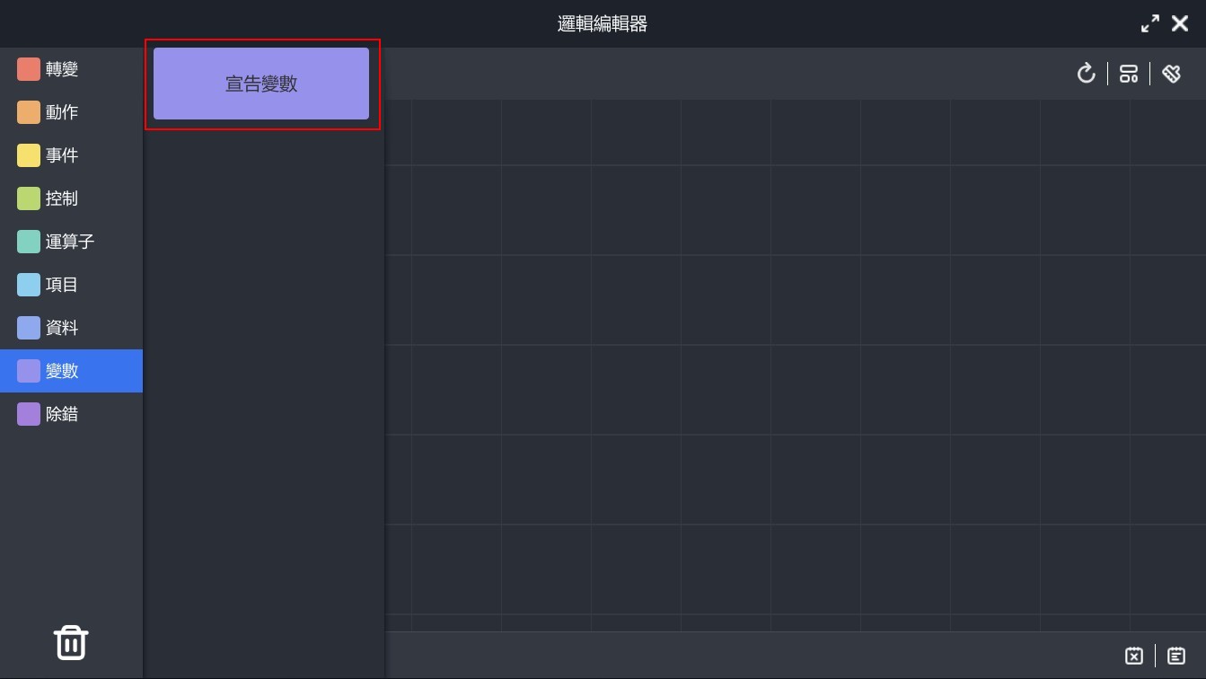 1. 點擊「宣告變數」後跳出視窗,輸入變數名稱建立新的變數。
