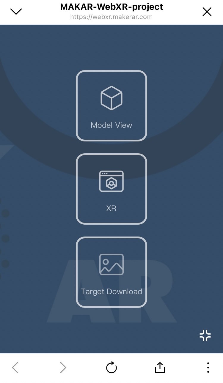 當您在 MAKAR Editor 完成專案時,通常會使用 MAKAR Viewer 來開啟專案,而除了 MAKAR Viewer 之外, MAKAR 同時提供以 URL 網站格式發布專案的服務,讓您無須安裝任何軟體,即可以立即體驗專案,下面將以 AR 圖像擴增實境為例,說明啟動 Web XR 的流程。