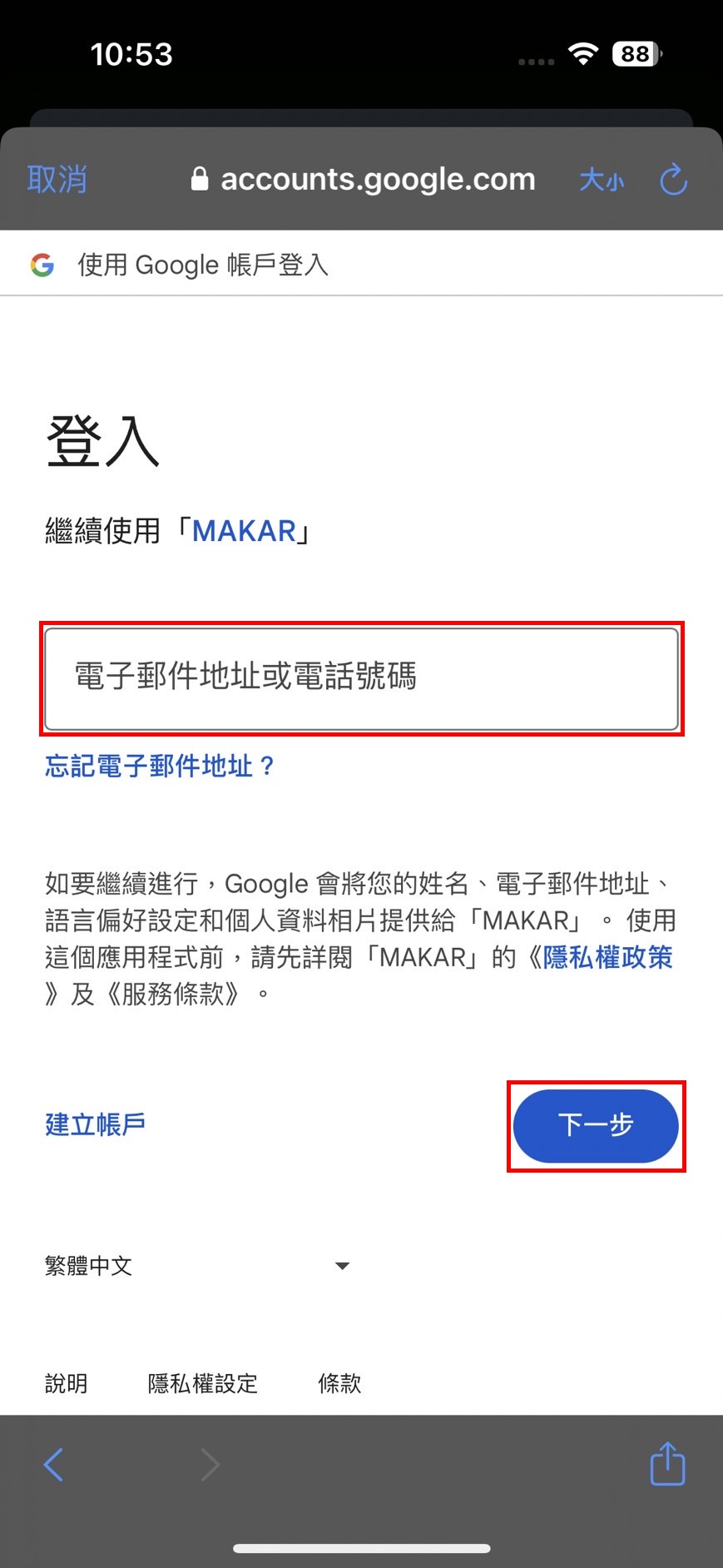 使用第三方帳號完成 MAKAR 帳號註冊