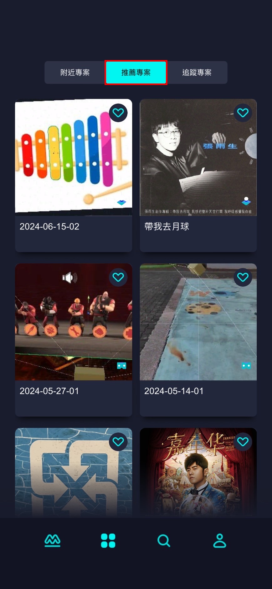 | 7. 註冊成功,順利進入推薦專案區,這裡將根據您在上一步驟中選擇的喜好,推薦相關專案。 |