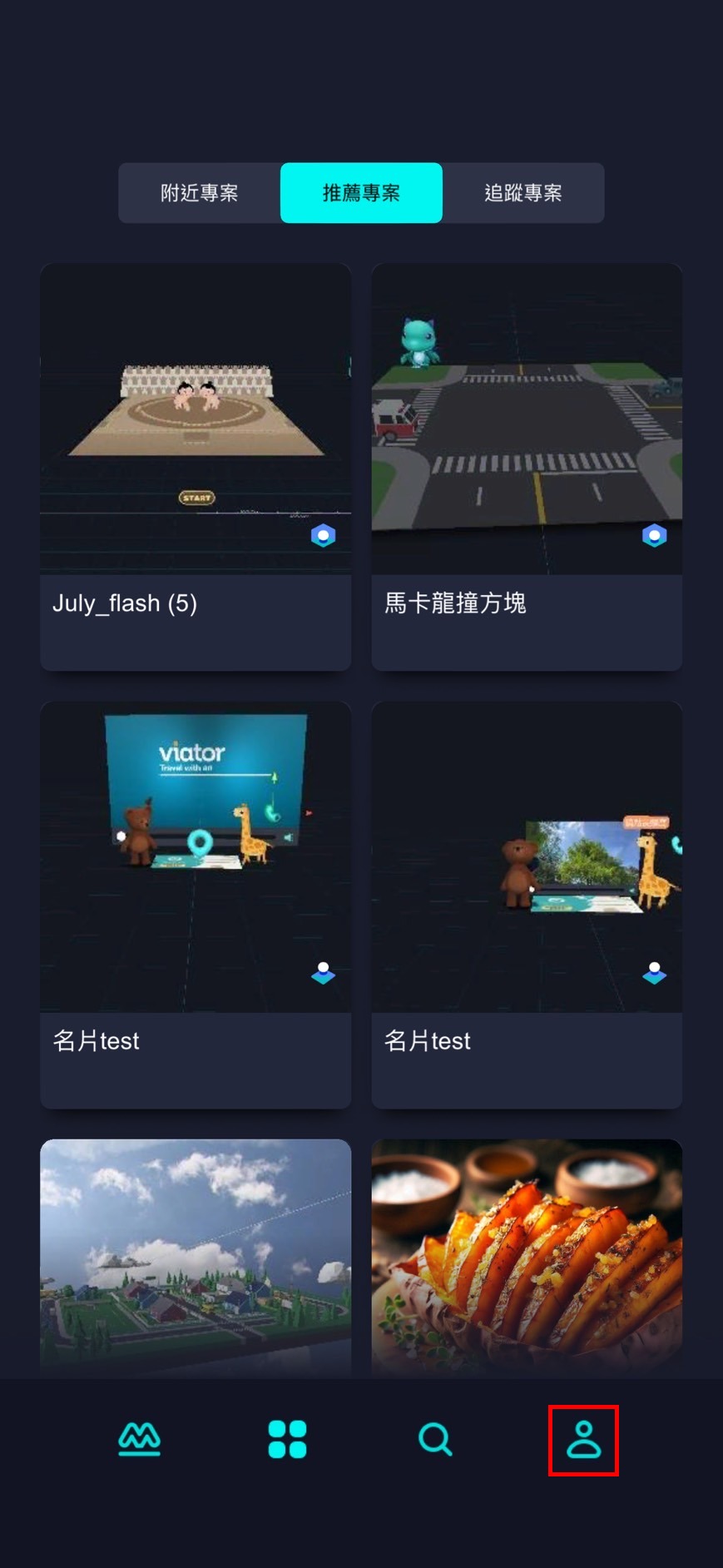 1. 點選右下角人像「icon1」。 2. 進入個人頁面,點選設定「icon2」。