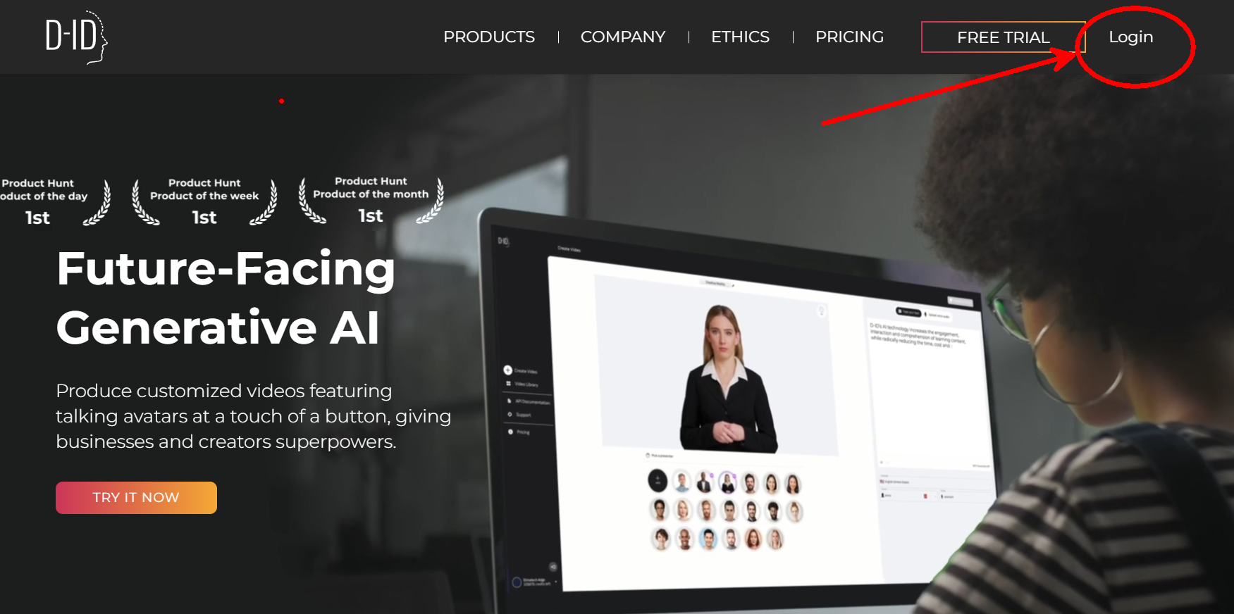 開啟D-ID網站(https://www.d-id.com/ ) 點選login