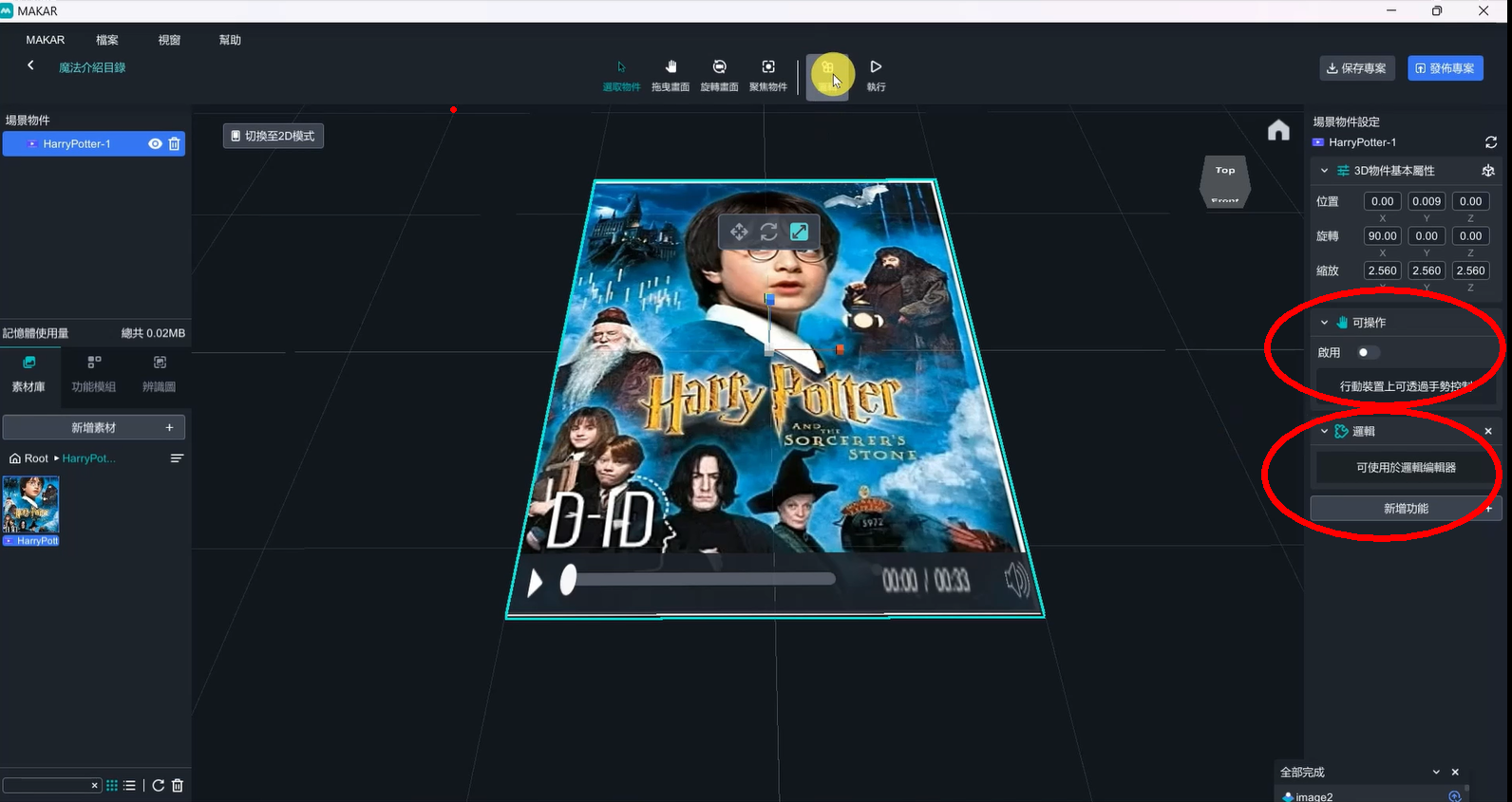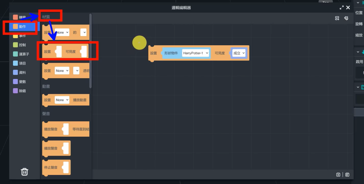 影片: 關閉「可操作」的功能,並新增邏輯功能。