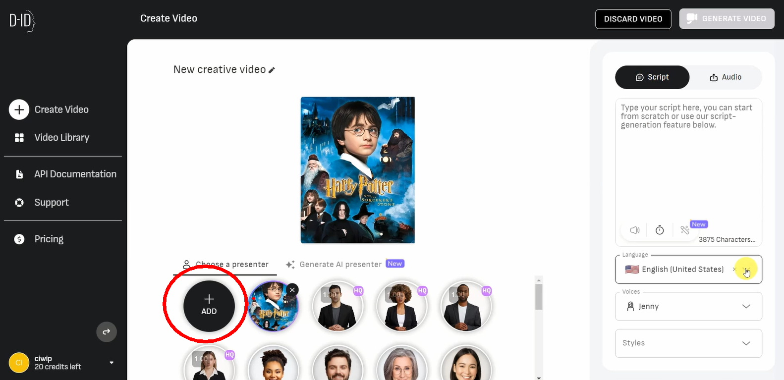 點選ADD新增圖片,將哈利波特的電影海報上傳。