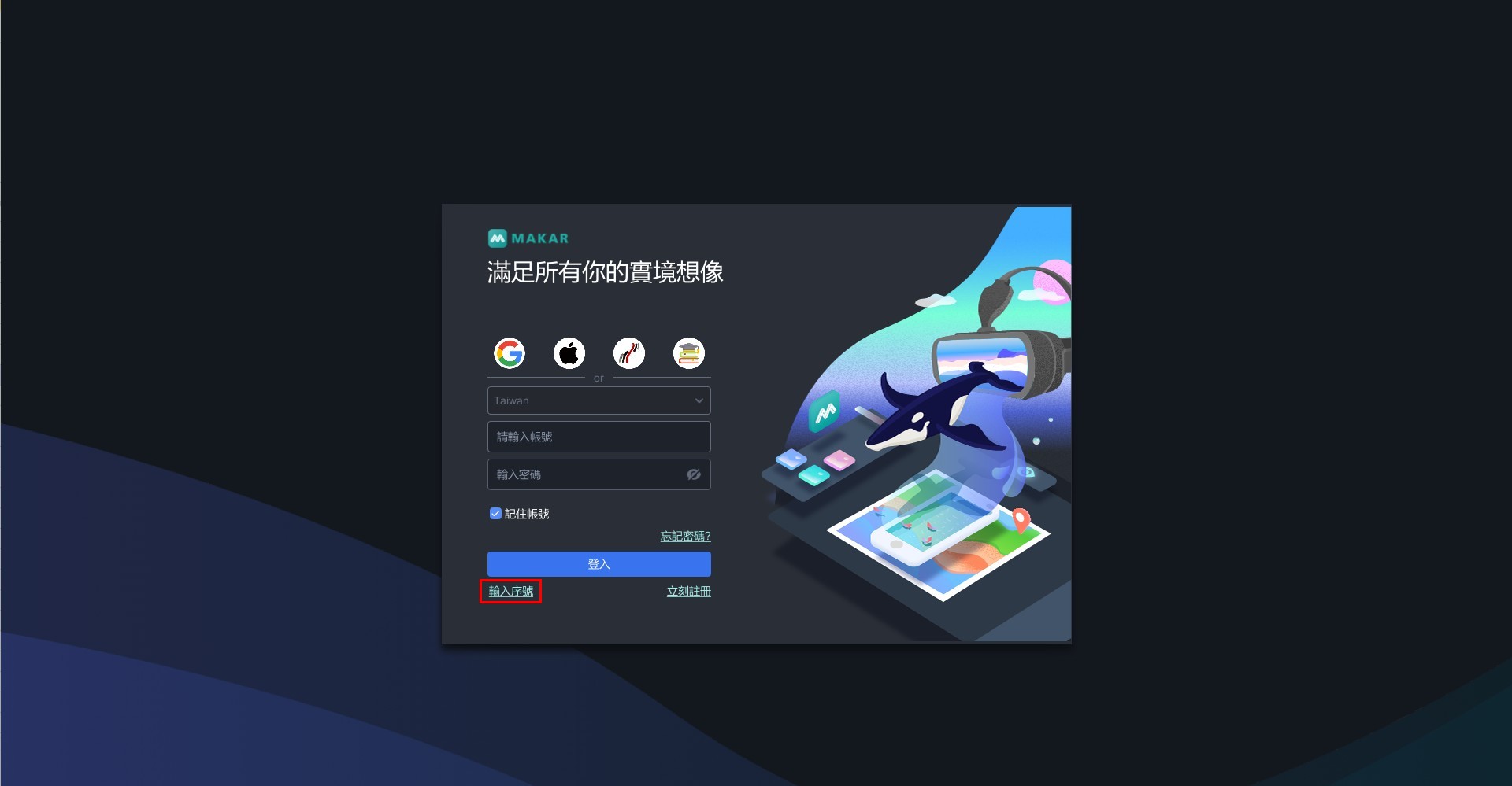 1. 開啟 MAKAR Editor,進入登入頁面,點選左下角「輸入序號」。