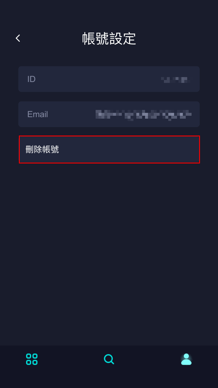 | ▲ 帳號設定 | ▲ 刪除帳號 |