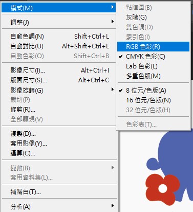 您可以開啟 Photoshop 先確認圖片是否為 RBG。