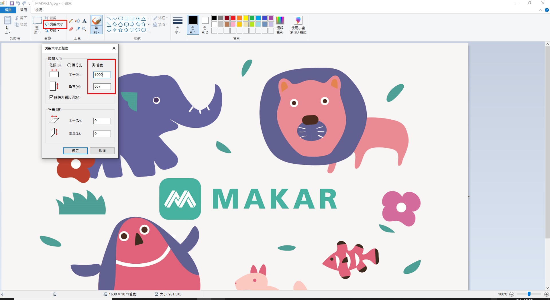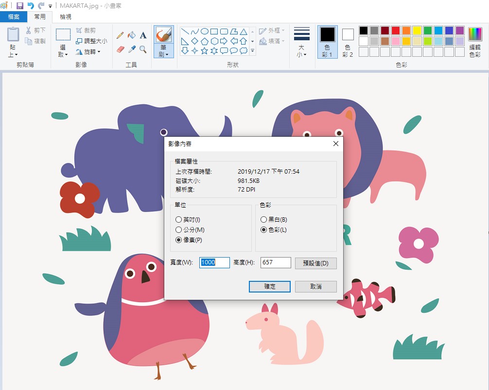 1. 可開啟小畫家,選擇調整大小。