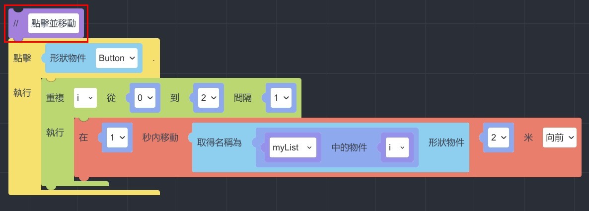 註解積木是一種幫助您為積木賦予名稱的工具,雖然它不會實際影響功能的運作,但可以用來整理複雜的積木結構,使整體更加清晰和易於理解。