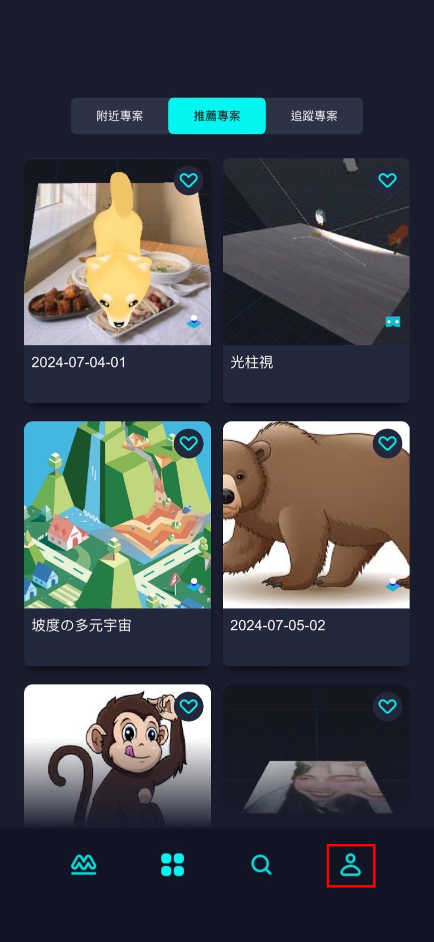 1. 點選右下角人像「icon1」。 2. 進入個人頁面,點選設定「icon2」。